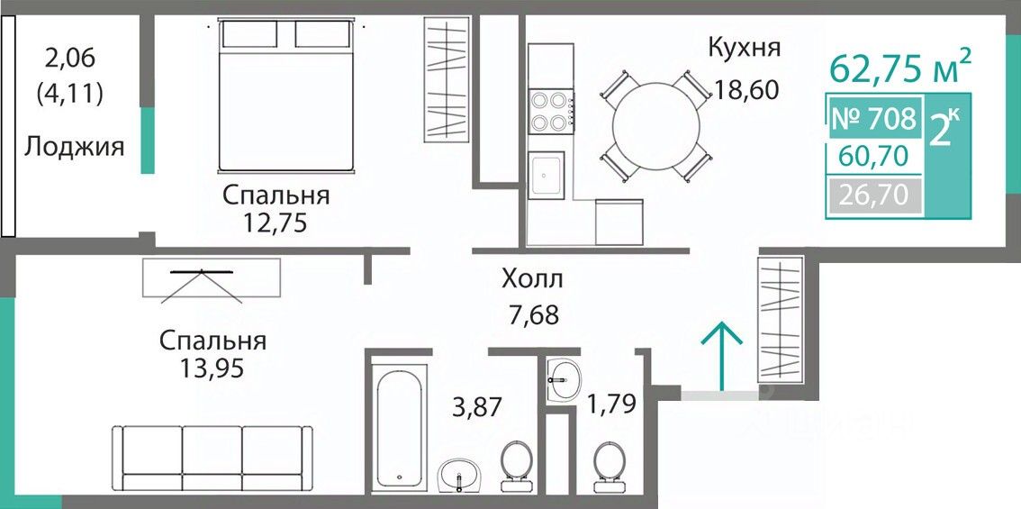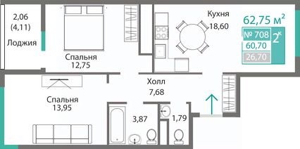 Продаётся 2-комнатная квартира в строящемся доме (Этап 4 (Секции А2, Ж2, Г4, В2, Г3)), срок сдачи: II-кв. 2028, общей площадью 60.7 кв.м., на 7 этаже. Новый жилой комплекс "Подсолнух" от застройщика "Монолит" расположен по адресу: Республика Крым, г. Симферополь, ул. Святителя Гурия