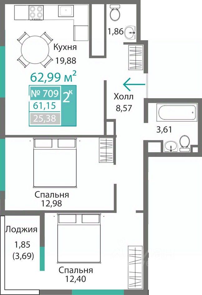 Продаётся 2-комнатная квартира в строящемся доме (Этап 4 (Секции А2, Ж2, Г4, В2, Г3)), срок сдачи: II-кв. 2028, общей площадью 61.15 кв.м., на 7 этаже. Новый жилой комплекс "Подсолнух" от застройщика "Монолит" расположен по адресу: Республика Крым, г. Симферополь, ул. Святителя Гурия