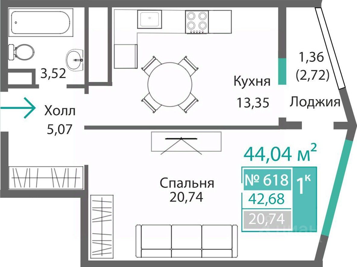 Продаётся 1-комнатная квартира в строящемся доме (Этап 4 (Секции А2, Ж2, Г4, В2, Г3)), срок сдачи: II-кв. 2028, общей площадью 44.04 кв.м., на 6 этаже. Новый жилой комплекс "Подсолнух" от застройщика "Монолит" расположен по адресу: Республика Крым, г. Симферополь, ул. Святителя Гурия