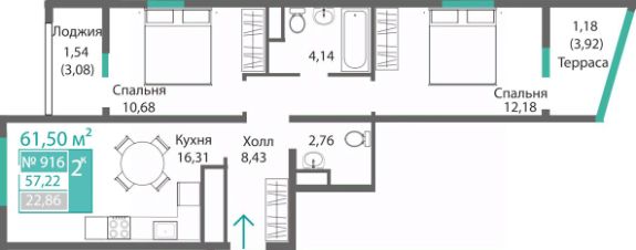 57,22 м²