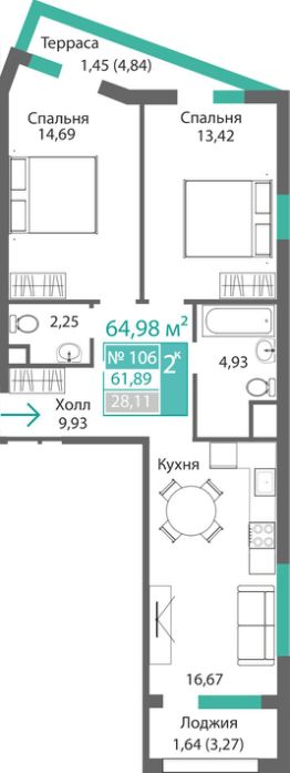 Продаётся 2-комнатная квартира в строящемся доме (Этап 4 (Секции А2, Ж2, Г4, В2, Г3)), срок сдачи: II-кв. 2028, общей площадью 64.98 кв.м., на 1 этаже. Новый жилой комплекс "Подсолнух" от застройщика "Монолит" расположен по адресу: Республика Крым, г. Симферополь, ул. Святителя Гурия