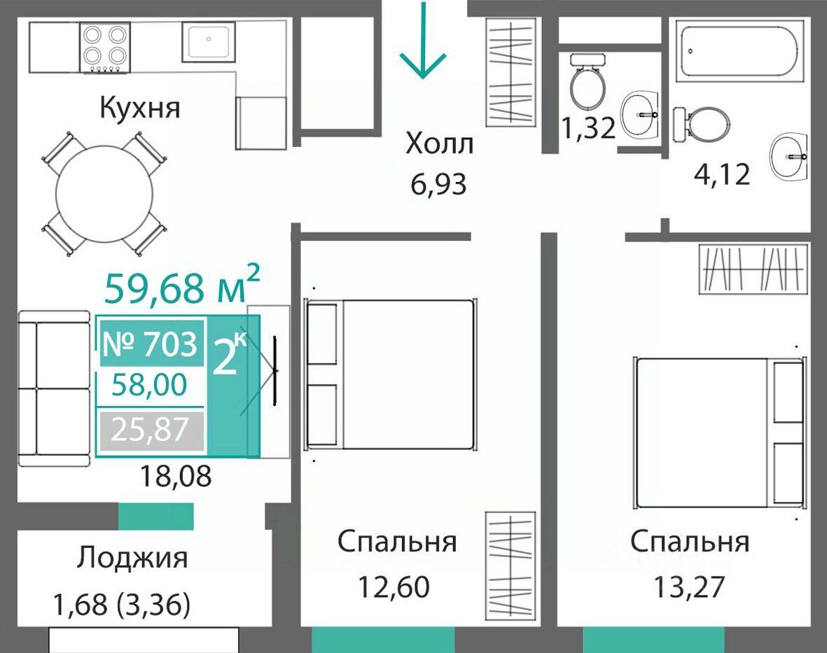 Продаётся 2-комнатная квартира в строящемся доме (Этап 4 (Секции А2, Ж2, Г4, В2, Г3)), срок сдачи: II-кв. 2028, общей площадью 58 кв.м., на 7 этаже. Новый жилой комплекс "Подсолнух" от застройщика "Монолит" расположен по адресу: Республика Крым, г. Симферополь, ул. Святителя Гурия