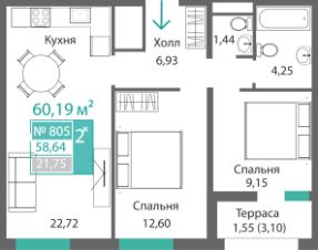 Продаётся 2-комнатная квартира в строящемся доме (Этап 4 (Секции А2, Ж2, Г4, В2, Г3)), срок сдачи: II-кв. 2028, общей площадью 58.64 кв.м., на 8 этаже. Новый жилой комплекс "Подсолнух" от застройщика "Монолит" расположен по адресу: Республика Крым, г. Симферополь, ул. Святителя Гурия