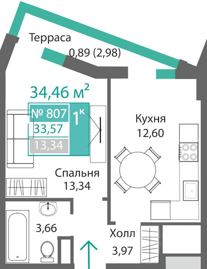 Продаётся 1-комнатная квартира в строящемся доме (Этап 4 (Секции А2, Ж2, Г4, В2, Г3)), срок сдачи: II-кв. 2028, общей площадью 34.46 кв.м., на 8 этаже. Новый жилой комплекс "Подсолнух" от застройщика "Монолит" расположен по адресу: Республика Крым, г. Симферополь, ул. Святителя Гурия