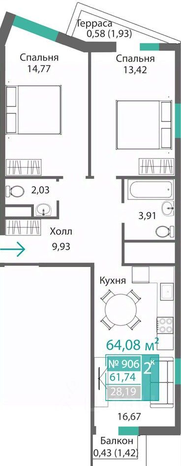 Продаётся 2-комнатная квартира в строящемся доме (Этап 4 (Секции А2, Ж2, Г4, В2, Г3)), срок сдачи: II-кв. 2028, общей площадью 61.74 кв.м., на 9 этаже. Новый жилой комплекс "Подсолнух" от застройщика "Монолит" расположен по адресу: Республика Крым, г. Симферополь, ул. Святителя Гурия
