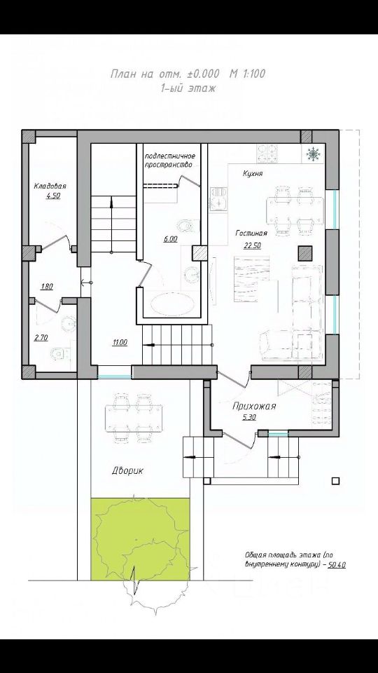 Первый этаж: 50,4 м²