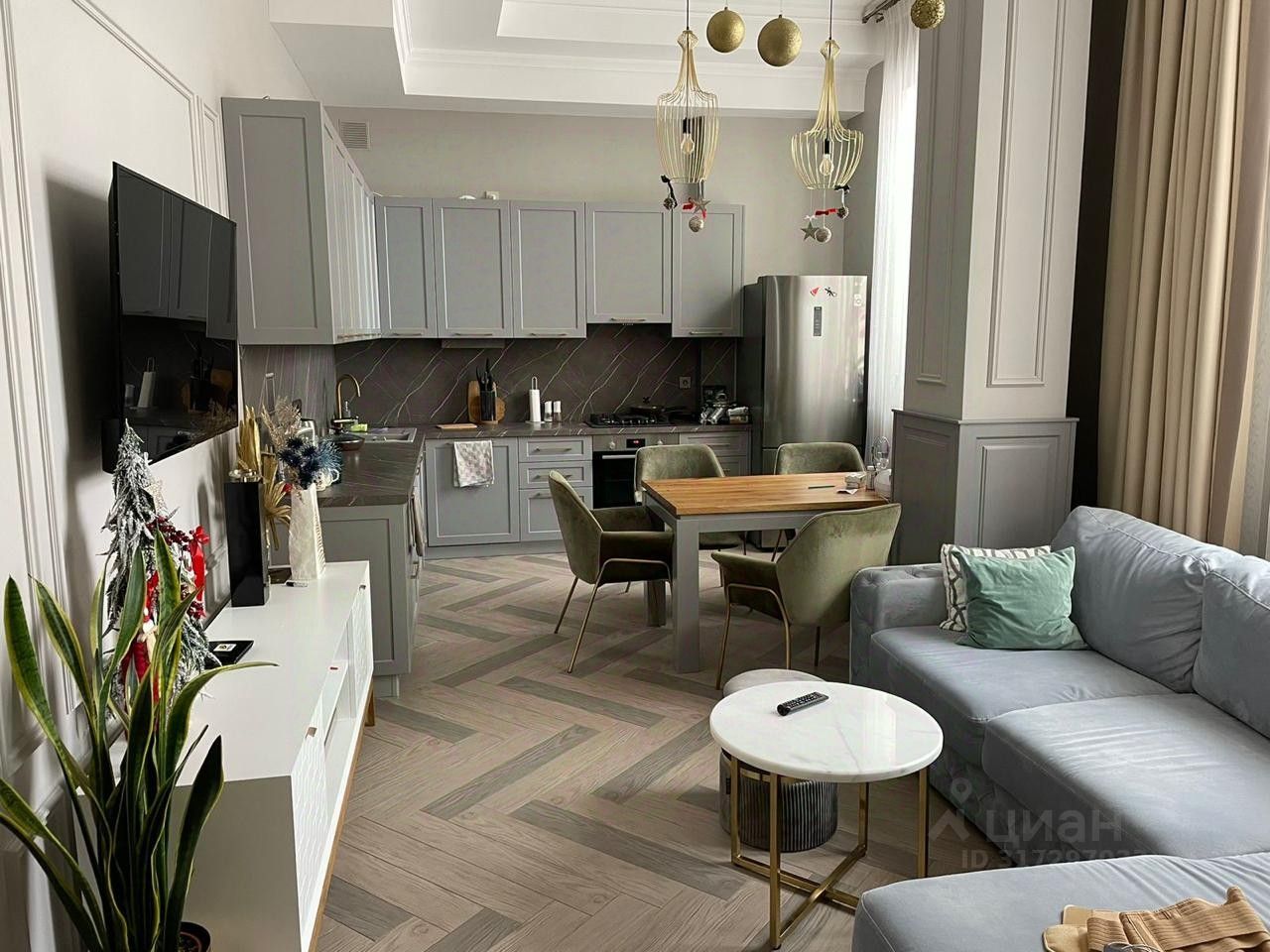 Тёплый пол, паркет "ёлочка", мебель в светлых тонах