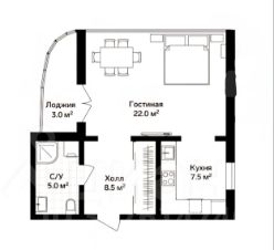 Апартаменты в живописном уголке Ялты, площадь указана с учётом лоджии.