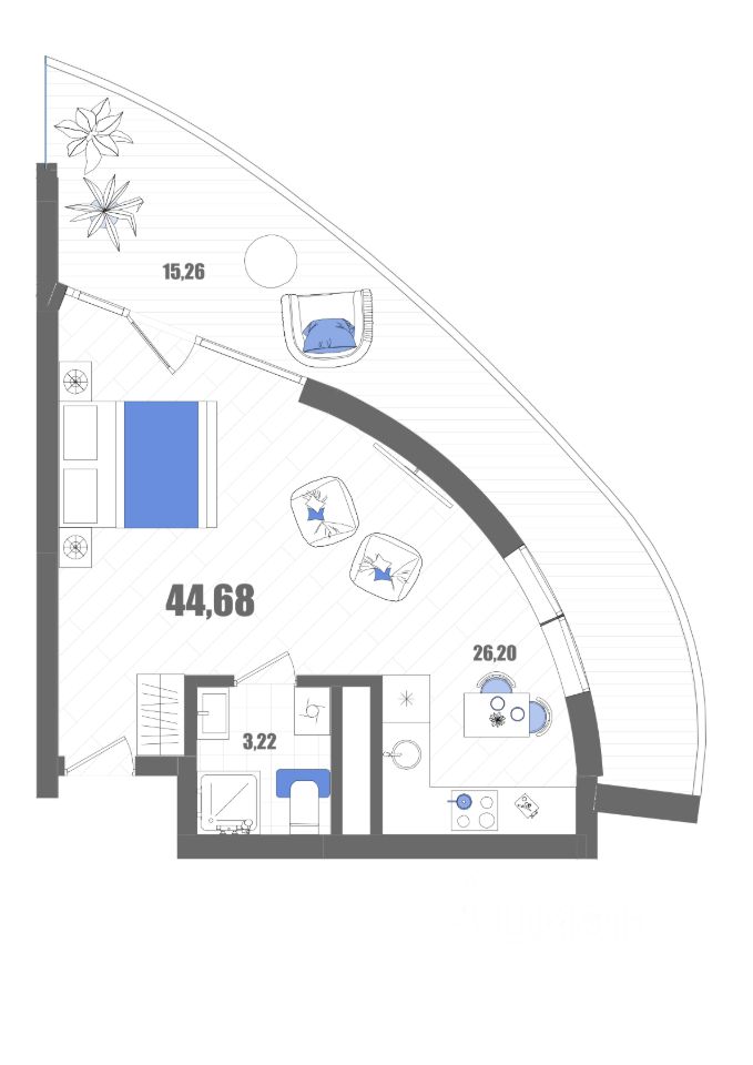 Продаётся студия-апартаменты в строящемся доме (Блок 1), срок сдачи: III-кв. 2027, общей площадью 44.68 кв.м., на 2 этаже. Moinaco Riviera" - мультиформатный комплекс с круглогодичной wellness-инфраструктурой, идеально сочетающий в себе комфорт и доходность в шаговой доступности от побережья Чёрного моря.
