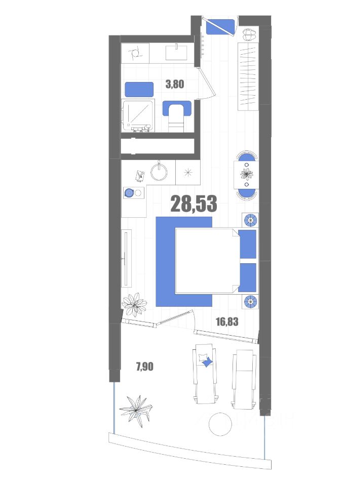 Продается апартаменты-студия, 28,53 м²