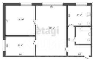 Общая площадь квартиры составляет 50кв.м, жилая площадь 37,2кв.м, кухня 6кв.м и совмещённый санузел.