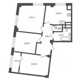 Планировка квартиры продумана для вашего комфорта: три просторные комнаты 17,53 м², 15,04 м², 11,78 м² для отдыха и работы, кухня 11,38 м² для семейных встреч, коридоры 9,28 м² и два санузла 5,33 м² и 1,42 м². Большое окно и качественная предчистовая отделка открывают пространство для создания идеального интерьера!