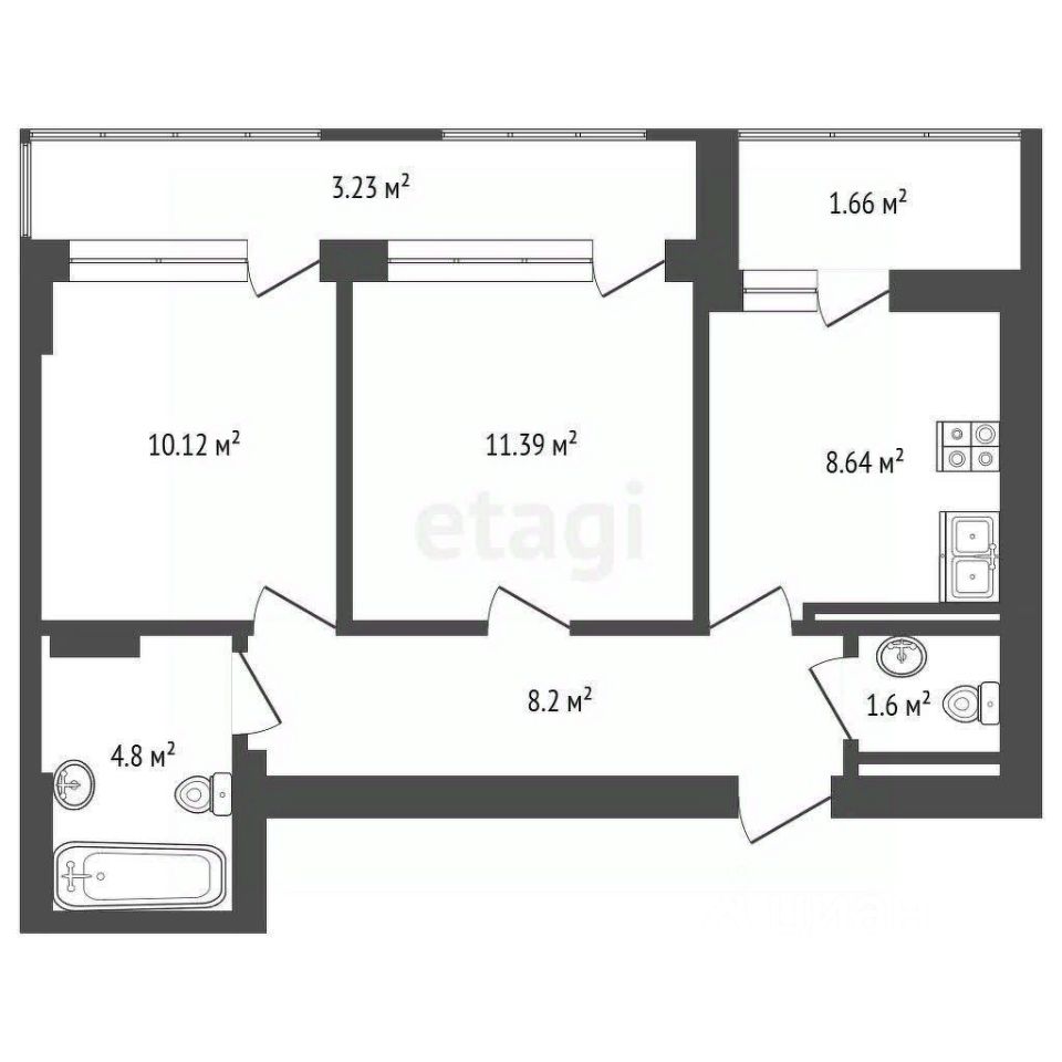 Квартира продумана до мелочей: просторная гостиная 11,39 м² с выходом на лоджию станет центром семейных вечеров, уютная спальня 10,12 м² ваш личный уголок для отдыха. Кухня 8,64 м² идеально подходит для кулинарных экспериментов, ванная 4,80 м² и санузел 1,60 м² обеспечат комфорт на каждый день. Лоджия 1,66 м² подарит вам место для вашего досуга.
