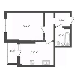 Квартира с продуманной планировкой включает в себя просторную комнату 16,2 м², где можно организовать комфортное пространство. Уютную кухню 13,5 м² для кулинарных шедевров. Балкон 3,6 м² и удобную ванную комнату 4,2 м² для вашего удобства.