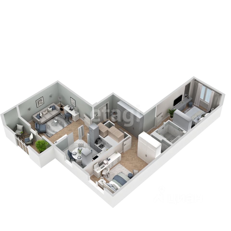 Квартира впечатляет продуманной планировкой: просторная гостиная 19,5 м² , две уютные спальни 14,6 м² и 16,1 м² могут стать как местом для досуга, так и можно организовать рабочую зону. Кухня 10,4 м² для изысканных блюд и уютных встреч с близкими. Ванная 3,4 м² и санузел 2,1 м² добавят практичности, а на балконах можно будет насладиться прекрасными видами.
