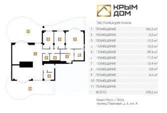 Пентхаус (378.2 м²) расположен на 14 этаже 14-этажного жилого дома. Ключевыми преимуществами объекта являются — лаконичный дизайн, расположение в окружении одного из самых красивых парков Ялты и продуманная организация пространства.