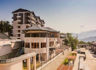 - Гидромассажная ванна и терраса с видом на горы.