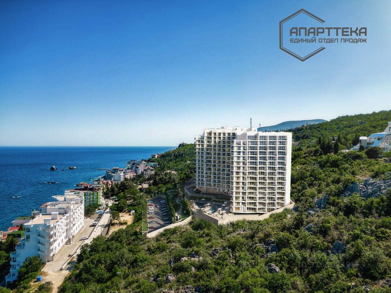 Апарт комплекс в курортном посёлке на Южном Берегу Крыма (ЮБК) в 135 метрах от моря. Современный вариант для личного отдыха или использования в качестве курортной недвижимости.