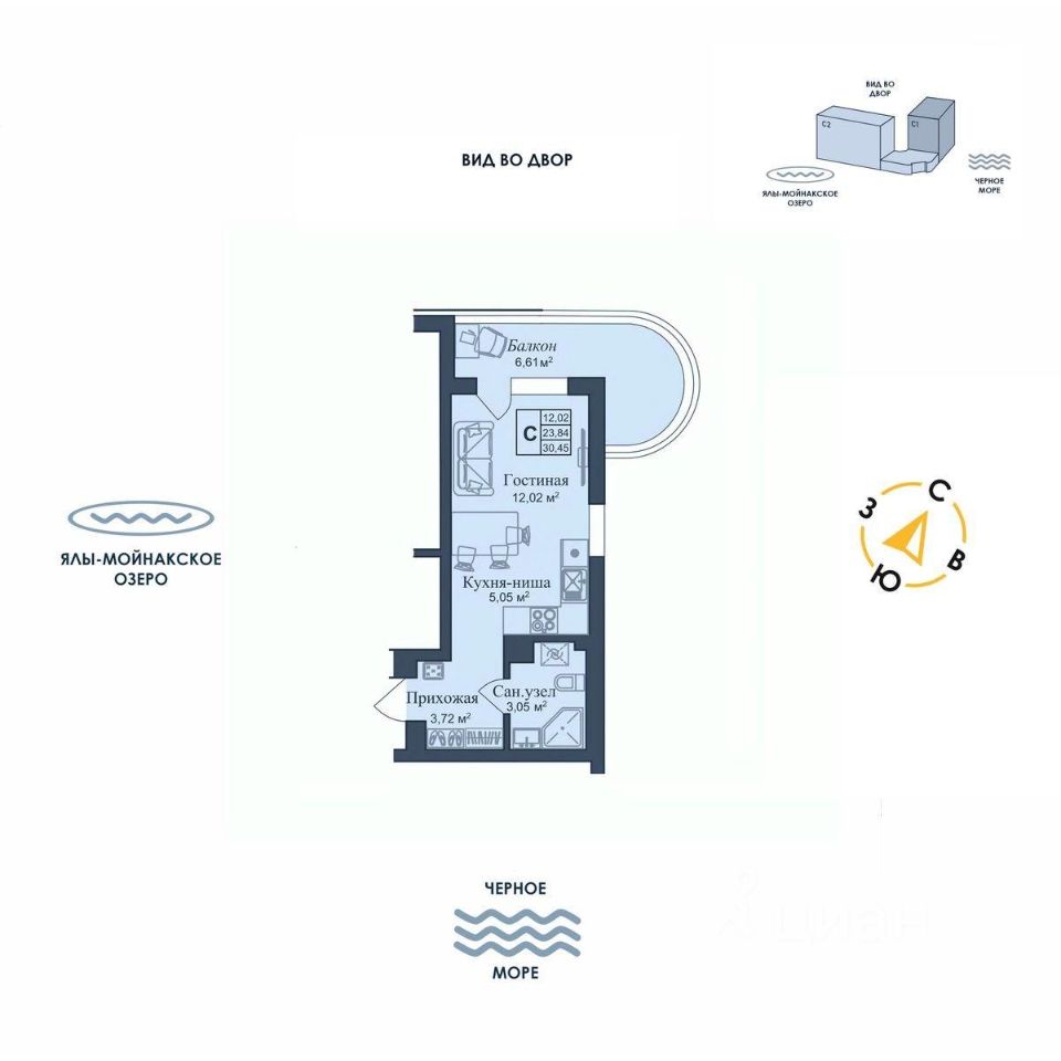 Общая площадь30,45 м²