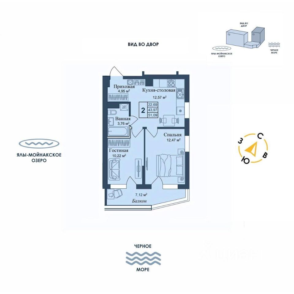 Общая площадь51,09 м²