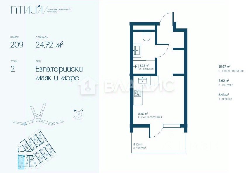 Продаются апартаменты студия с видом на море от собственника. Цена ниже чем у застройщика.