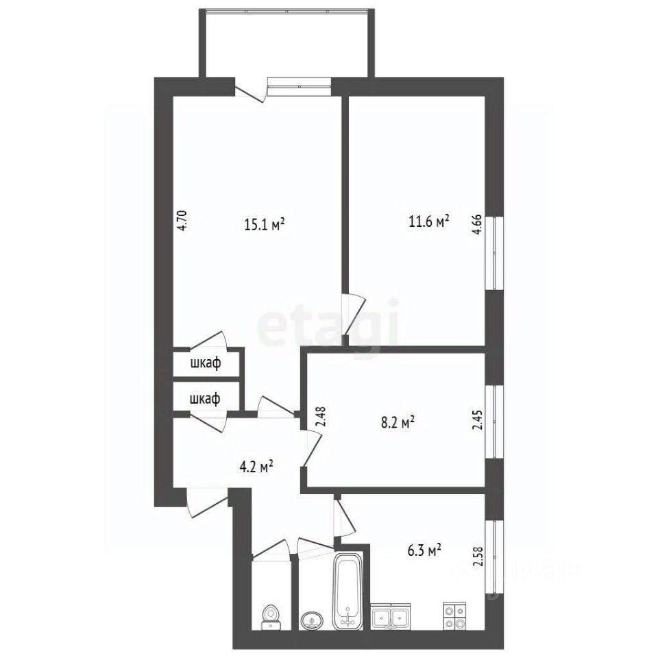 Площадь  49,3 м.кв.