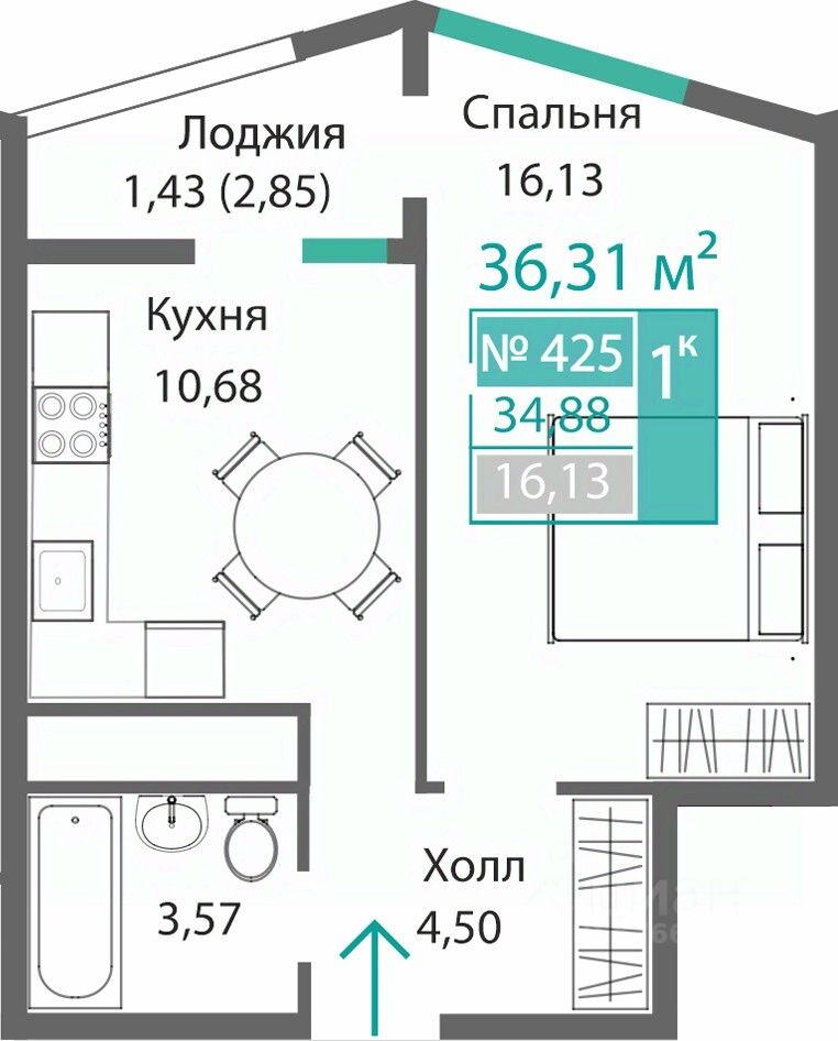 Продаётся 1-комнатная квартира в строящемся доме (Этап 1), срок сдачи: I-кв. 2028, общей площадью 36.31 кв.м., на 4 этаже. Новый жилой комплекс от ГК "Монолит" по адресу: Республика Крым, Симферополь, улица Святителя Гурия