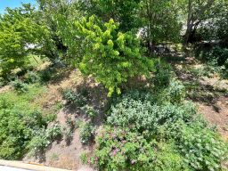 Уютный двор с зелеными насаждениями и местом для парковки авто. чистая и светлая парадная.