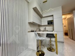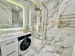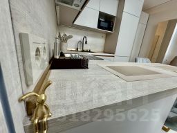 Сделан качественный ремонт по дизайн-проекту, установлена сантехника, мебель, кондиционер, кухонный гарнитур и встраиваемая техника
