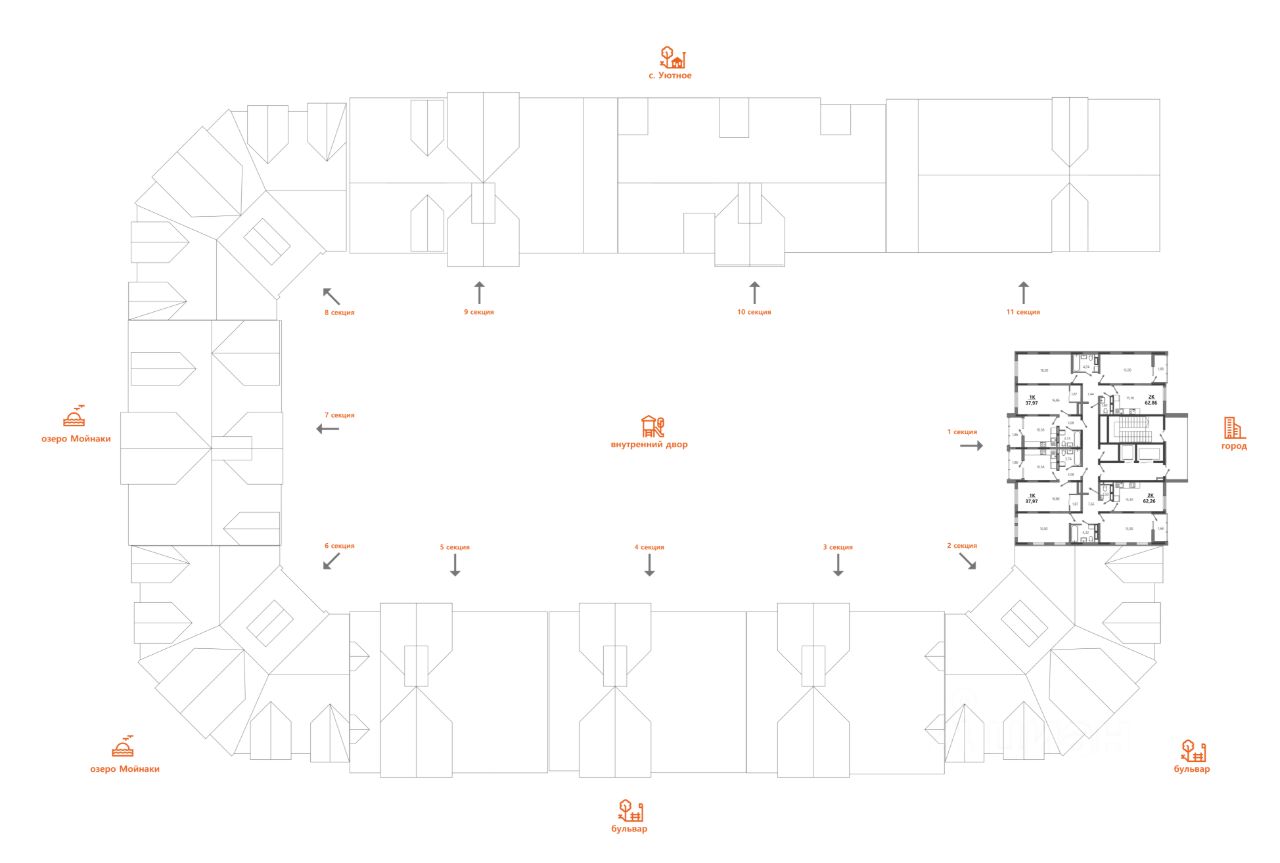 • 8 приватных жилых кварталов