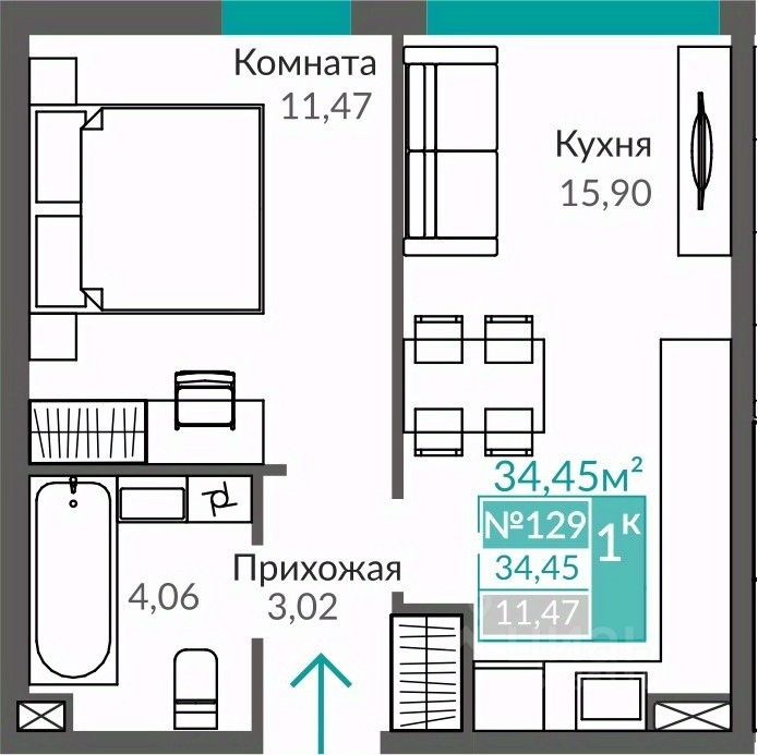 Продаётся 1-комнатная квартира в строящемся доме (С7), срок сдачи: III-кв. 2027, общей площадью 34.45 кв.м., на 1 этаже. Жилой квартал "Абрикос" - начало яркой истории жизни в прогрессивном районе Симферополя - Семья городских кварталов "Крымская Роза".