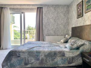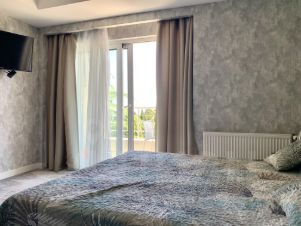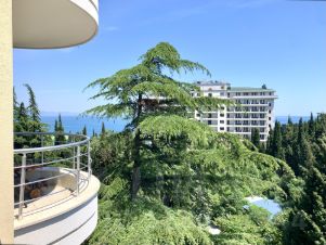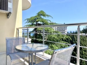 С балкона апартаментов открывается вид на море и горы. Здание комплекса монолитное, 2010 года постройки.