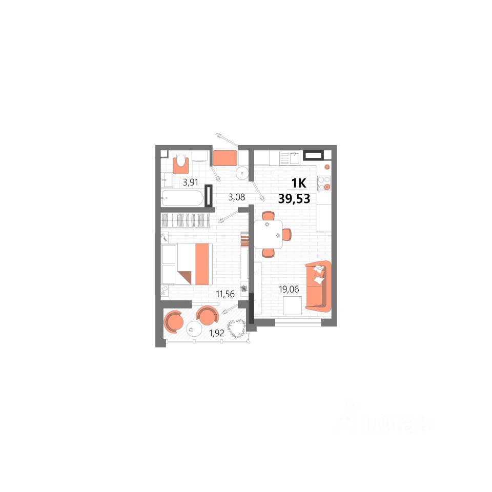 39,53 м²