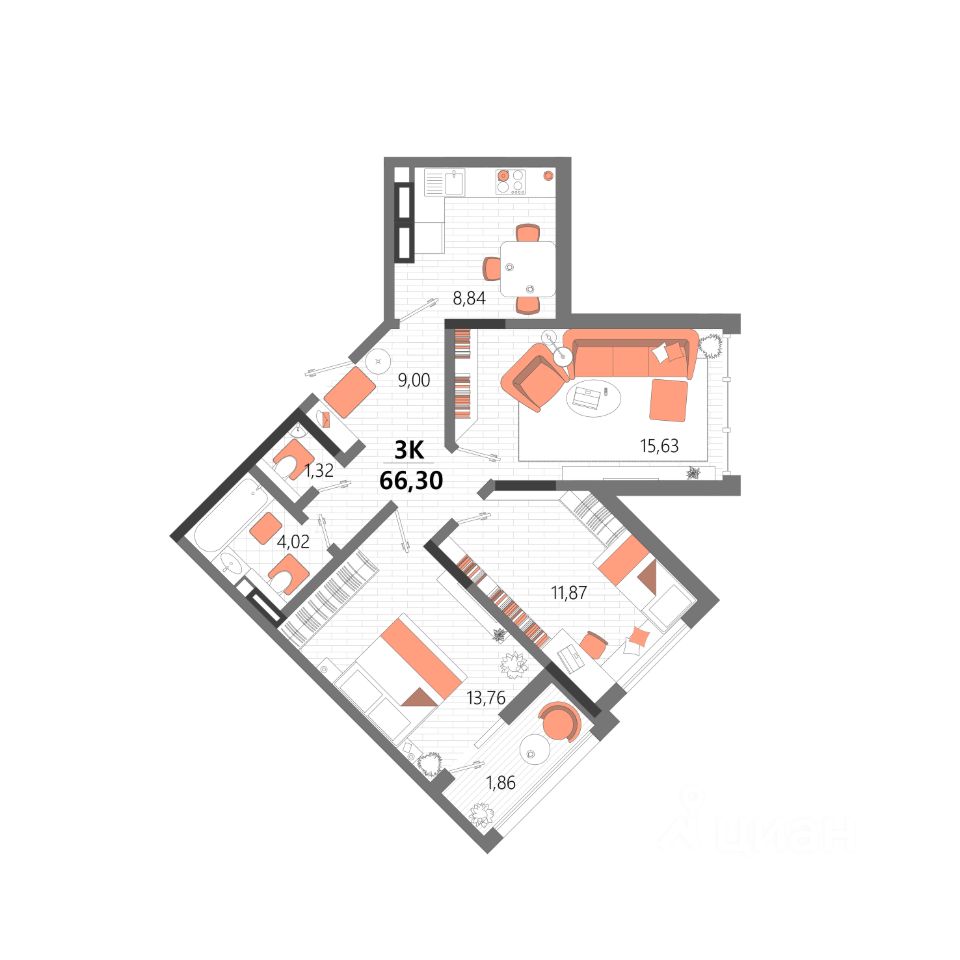 66,3 м²