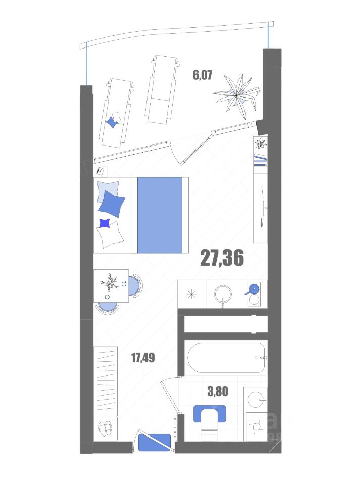Продаётся студия-апартаменты в строящемся доме (Блок 1), срок сдачи: III-кв. 2027, общей площадью 27.36 кв.м., на 18 этаже. Moinaco Riviera" - мультиформатный комплекс с круглогодичной wellness-инфраструктурой, идеально сочетающий в себе комфорт и доходность в шаговой доступности от побережья Чёрного моря.
