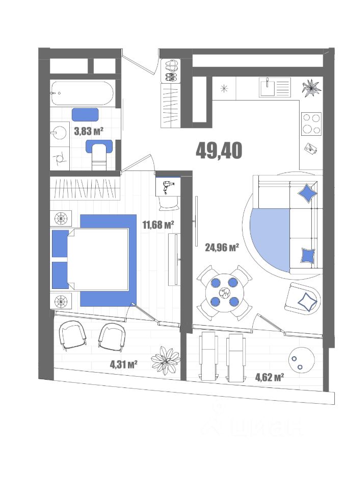 Продаются 1-комнатные апартаменты в строящемся доме (Блок 2), срок сдачи: III-кв. 2027, общей площадью 49.4 кв.м., на 3 этаже. Moinaco Riviera" - мультиформатный комплекс с круглогодичной wellness-инфраструктурой, идеально сочетающий в себе комфорт и доходность в шаговой доступности от побережья Чёрного моря.