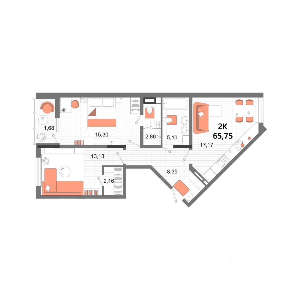 65,75 м²