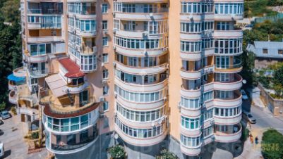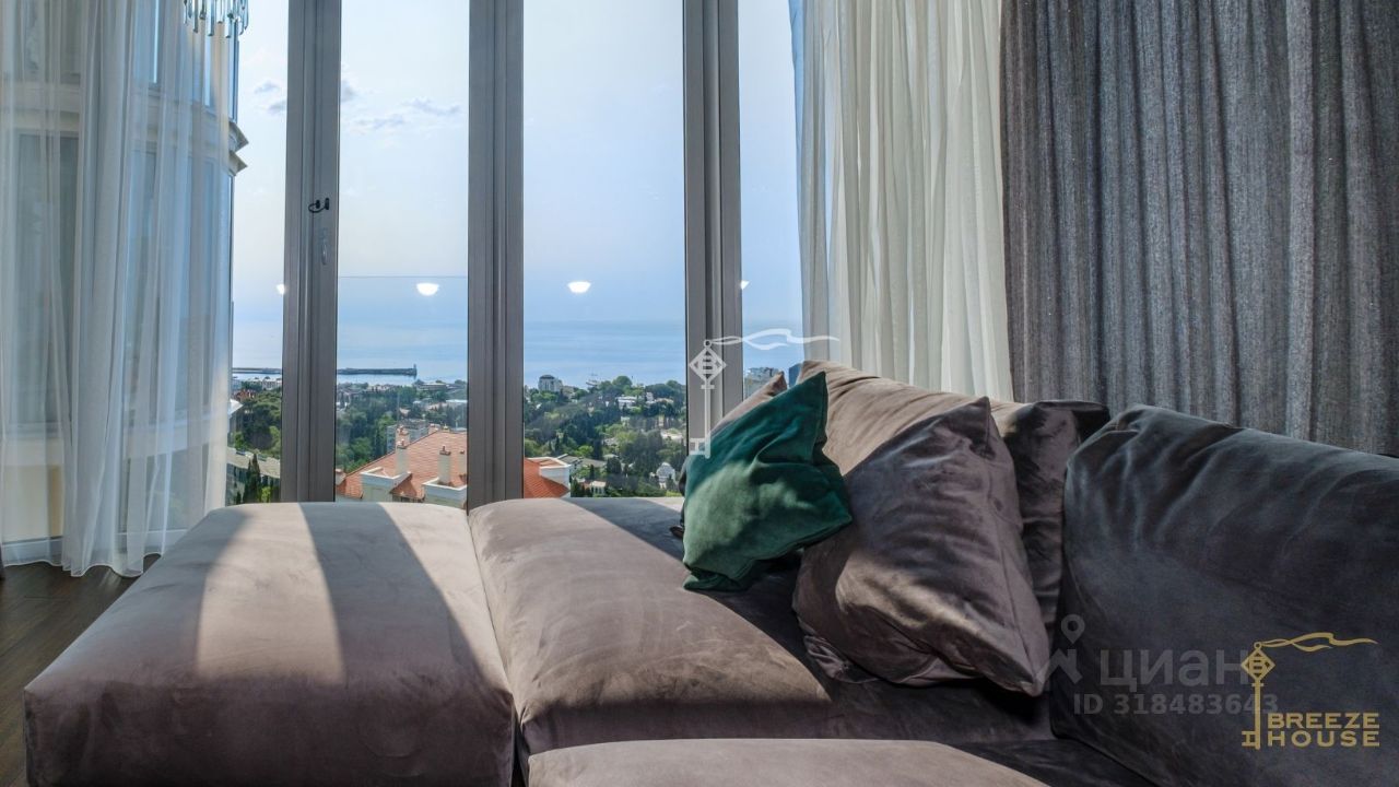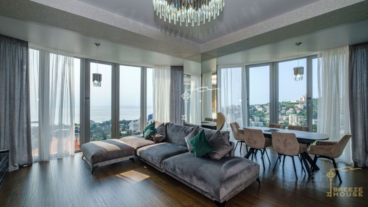 Продаётся светлая 4-комнатная квартира с дизайнерской отделкой и мебелью из Италии с панорамным видом на море, горы и город в ЖК "Вершина успеха" в 800 метрах от набережной Ялты.