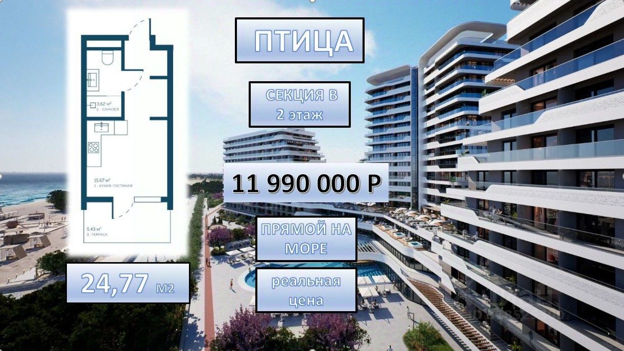 Прямой вид на море! 24,77м2
