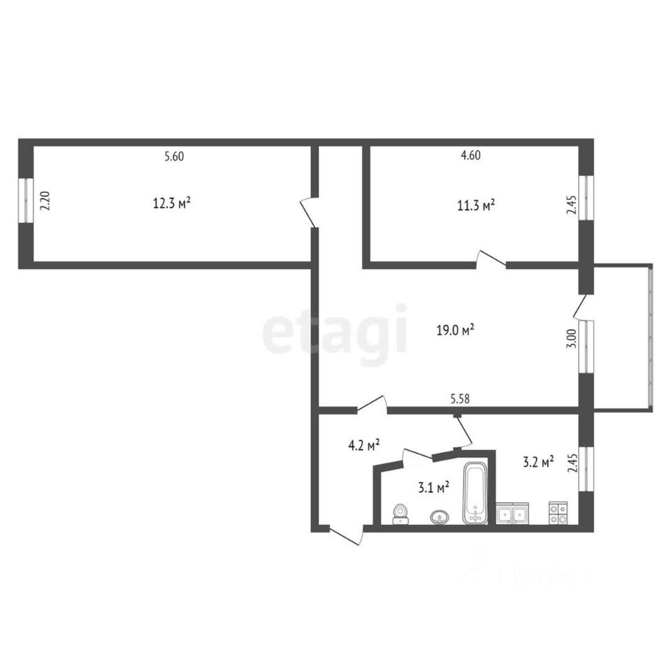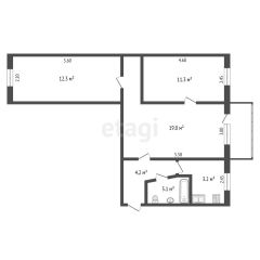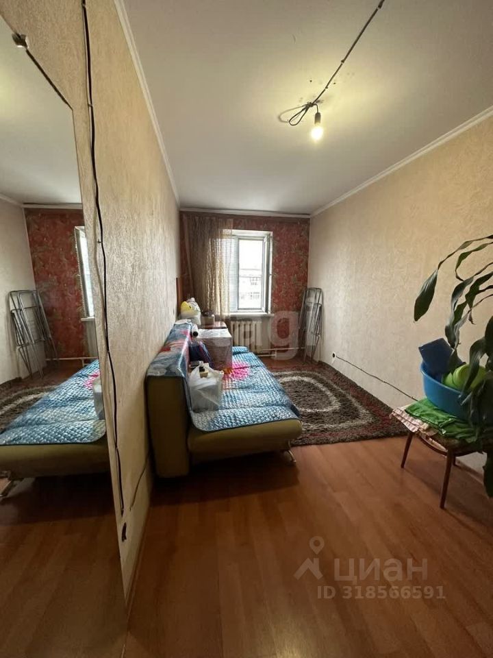 Квартира расположена на пятом этаже пятиэтажного блочного дома. Квартира состоит из двух раздельных комнат (11,3 и 12,3)и между ними зал, кухня (5,2), совмещенный санузел и коридор. Три окна (спальня, зал и кухня) выходят во двор, четвертое - на проспект. Квартира довольно теплая, зимой топят хорошо. Также всегда есть вода, как холодная (центральная), так и горячая (колонка).
