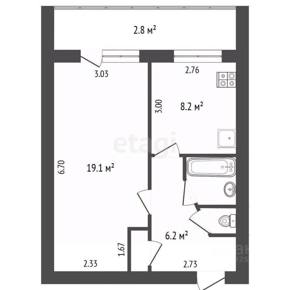 Планировка включает изолированную комнату, просторную кухню с панорамным окном и отдельную прихожую. Автономное газовое отопление позволяет регулировать температуру по своему усмотрению и экономить на коммунальных расходах. Квартира продаётся без отделки, что даёт возможность создать интерьер с нуля в соответствии с личными предпочтениями.