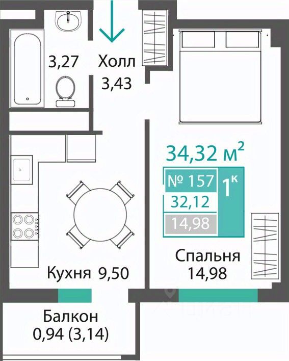 Продаётся 1-комнатная квартира в строящемся доме (ЭТАП 2, СЕКЦИИ Б1, Б2, Б3, Б4), срок сдачи: III-кв. 2028, общей площадью 32.12 кв.м., на 7 этаже. Новый жилой комплекс "Семейный квартал ПРОПОЛИС" от застройщика "Монолит" расположен по адресу: Республика Крым, Симферопольский район, с. Мирное, ул. Учительская