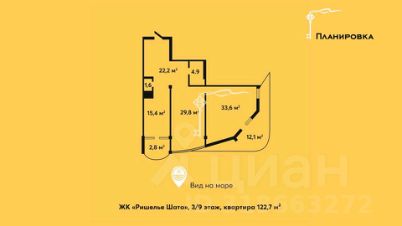 Предлагается к продаже двухкомнатная квартира общей площадью 122,7 м², расположенная на 3-м этаже 9-ти этажного дома жилого комплекса бизнес-класса Ришелье Шато в Гурзуфе.
