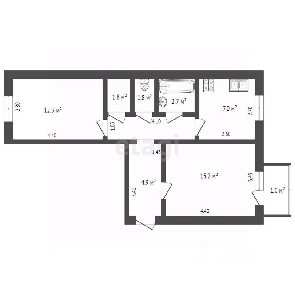 В продаже двухкомнатная квартира в курортном поселке Орджоникидзе. Квартира находится на 2м этаже двухэтажного дома. Площадь квартиры 50 кв м., площадь комнат 15,2 кв м и 12,3 кв м. Кухни - 7 кв м.