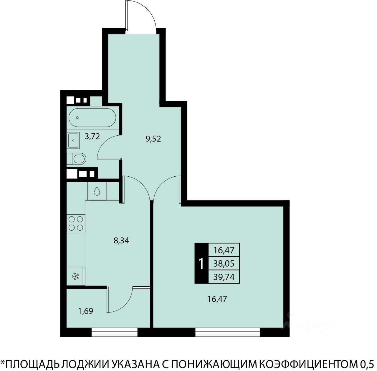 39,74 м²