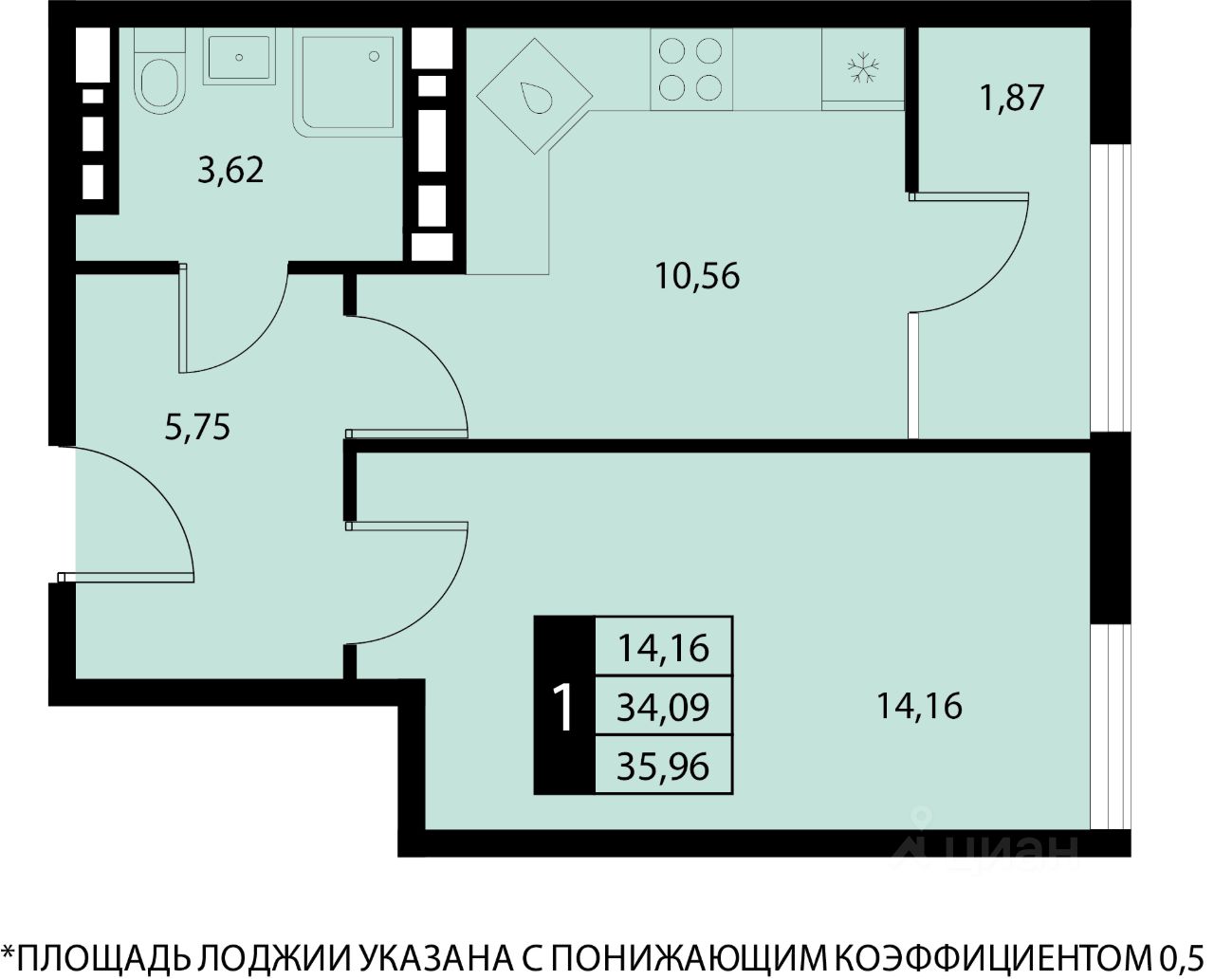 35,96 м²