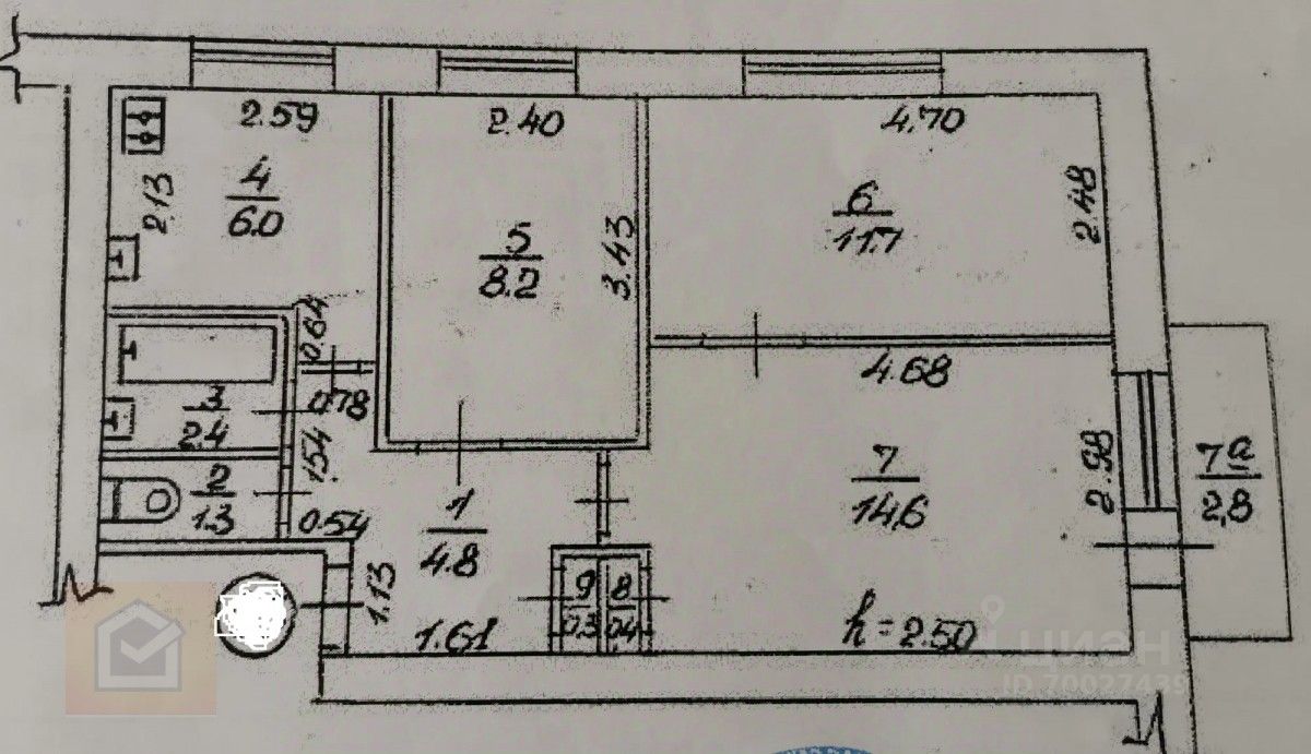 Санузел раздельный, просторный коридор. Две изолированные комнаты (спальни) и одна проходная (зал). Балкон застеклен.