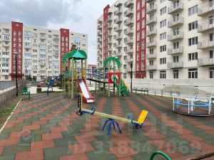 Ухоженная территория двора, спортивная и детская площадки, фонтаны, вокруг дома наземная парковка.