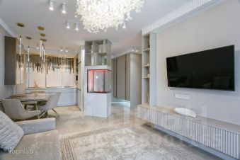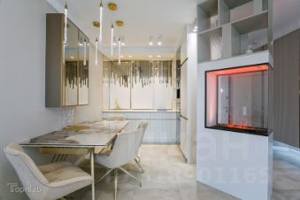 В квартире выполнен дизайнерский ремонт, тёплый пол водяной во всей квартире. Вся Мебель под заказ.