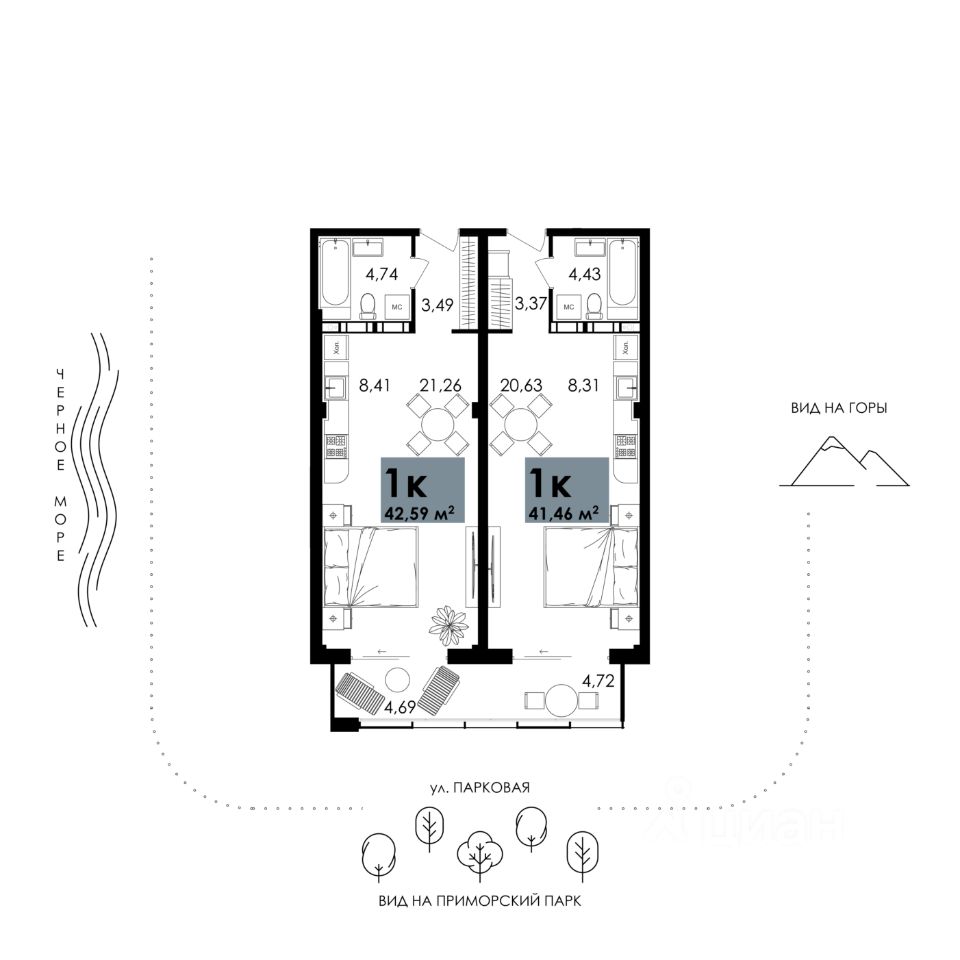 Продаются апартаменты общей площадью 84,83 м2 в премиальной южной резиденции "Park Plaza" в самом сердце Алушты.